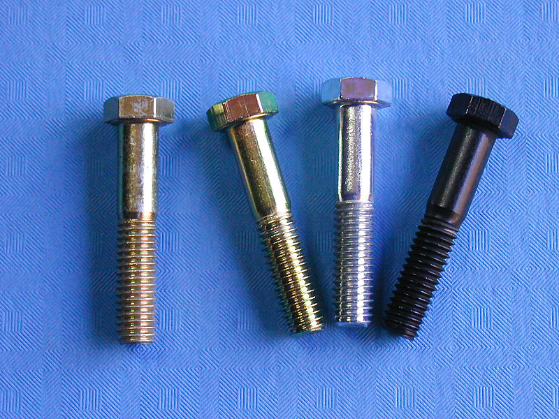 Commercial bolts bought at a hardware store. 3 were stripped and replated with the 3 different colors I use.
