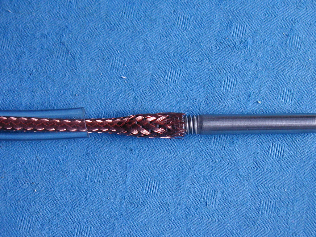 Slide the threaded end of the bolt into the expanded braid up to the end of the threads