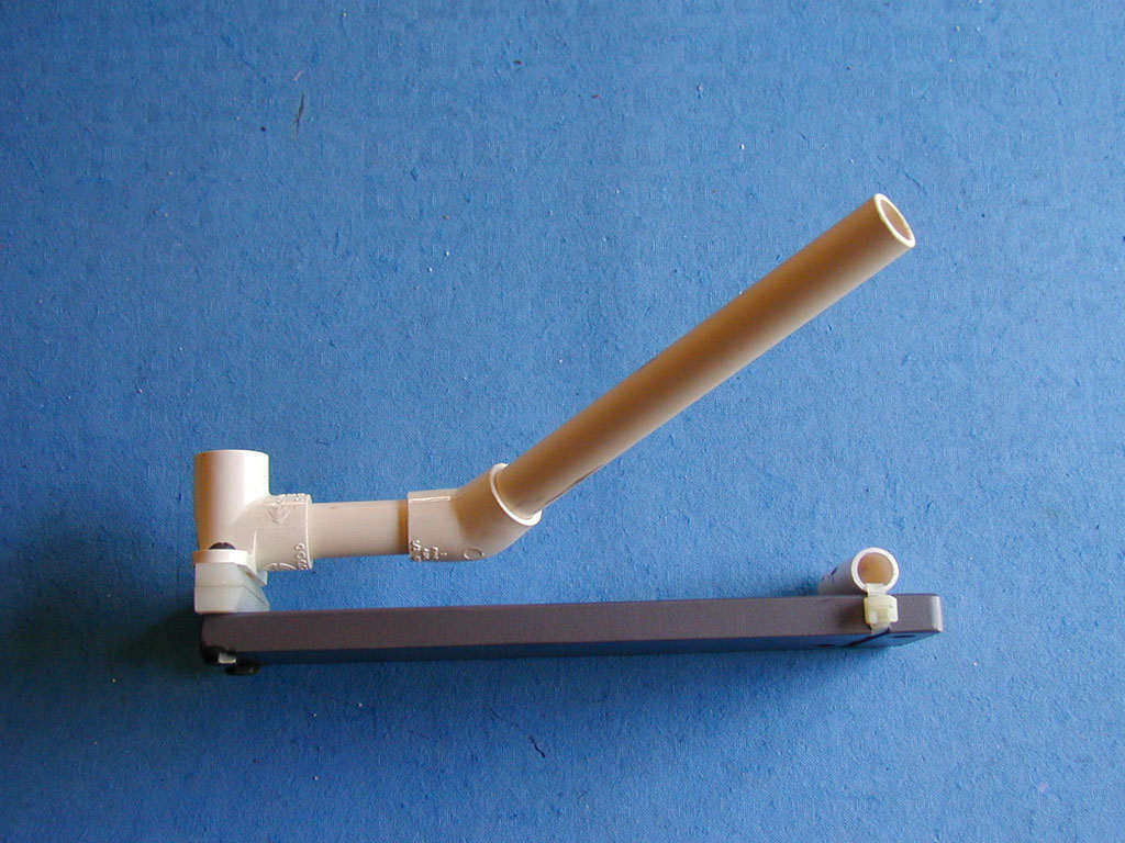 The 2 plastic spacers at left (again from the scrap heap) were needed to provide enough space for the assembly to just drop over the lip edge of the tank.